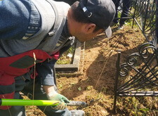 В данном случае мы приступили к работе на уже существующей могиле, на который были памятник с цветником и оградка. Клиенту мешала трава на участке, поэтому было принято решение отсыпать территорию каменной крошкой.