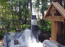 Так выглядело место захоронения на момент окончания работы: деревянный крест покрыт защитным раствором; мраморные изделия отшлифованы и покрыты гидрофобной субстанцией, стыки элементов промазаны белым герметиком; полые столбики, восстановлены; в цветнике заменена земля и посажен газон.